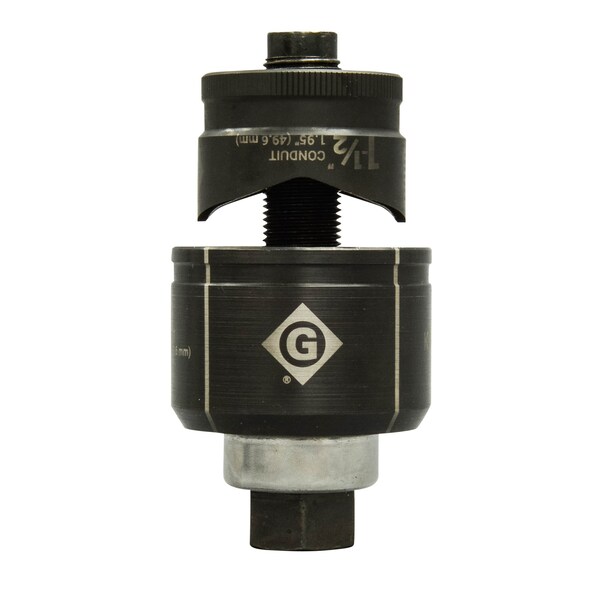 Knock Out Set, Knockout Set, Hole Size Nominal 1.5 in, Hole Size (In.) 1 19/20 in, Conduit and Pipe Size (In.) 1 1/2 in, Max. Capacity Mild Steel (Ga.) 10 ga, Slug Round Slugs, Alignment Markings, Laser Marking, Punch with Knurled Edge, For punching holes in mild steel, stainless steel, brass, copper, aluminum, fiberglass and plastics, Use With Greenlee battery-hydraulic knockout drivers, manual-hydraulic knockout drivers, or ratchet wrench.
