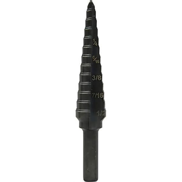 Multi-Hole Step Drill Bit, 1/8 in dia Min Hole, 1/2 in dia Max Hole, 13 Steps, Mild Steel