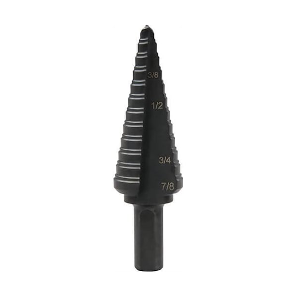 Multi-Hole Step Drill Bit, 3/16 in dia Min Hole, 7/8 in dia Max Hole, 12 Steps, Mild Steel