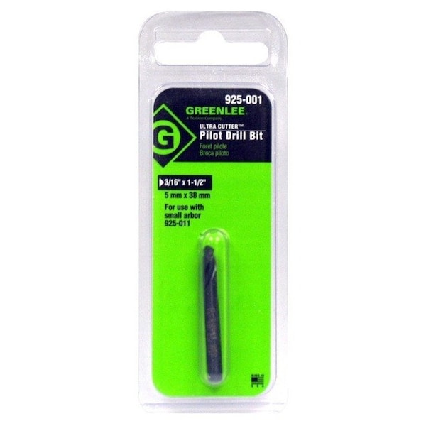 Pilot Drill Bit, Pilot Bit Size 5 mm, Pilot Bit Shank Style Hex, Pilot Bit Shank Size 3/8 in, Pilot Bit Overall Length 38 mm, Pilot Bit Material High Speed Steel, For Use On Aluminum, Fiberglass, Metal, Plastic, Rubber, Steel