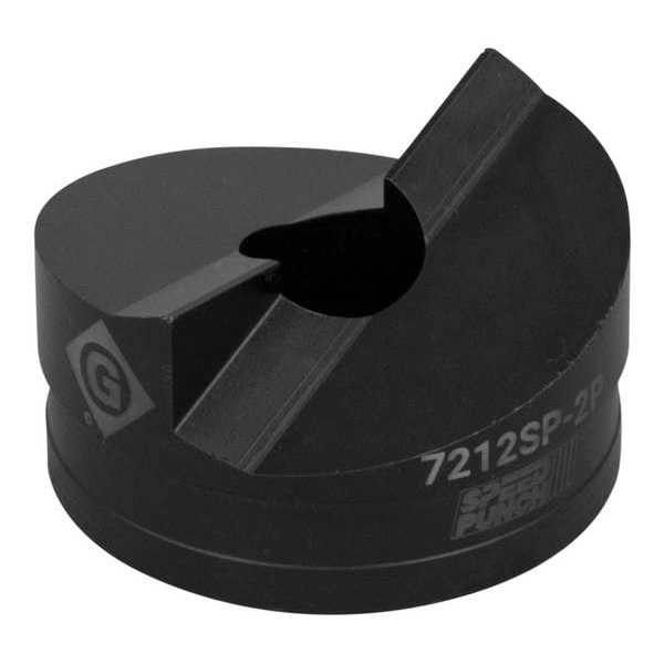 This Greenlee 7212SP-2P Speed Punch is a must-have for punching holes in various materials. This punch has an speed punch standard round function, which makes it ideal for punching holes in mild steel, aluminum, fiberglass or plastic. It is up to 3 times faster than conventional knockout punches when setting up and disassembling. The slug splits in half and falls free from the die and stud, allowing you to easily remove it from the hole. The punch has a 2" size with a 2 52/125" hole size nominal and a 2.416" hole size. If you need a high quality tool that will make your work easier, this Greenlee Punch is what you are looking for.