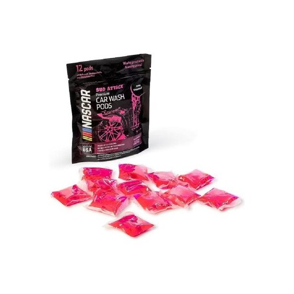 NASCAR 12 count Car Wash Pods. Water-soluble premeasured concentrate pods. Makes 4 gallons of ready-to-use vehicle wash. Works in foam cannons automatic systems pressure washers and bucket washing. Independently tested against leading competitors and deemed best wash efficiency.