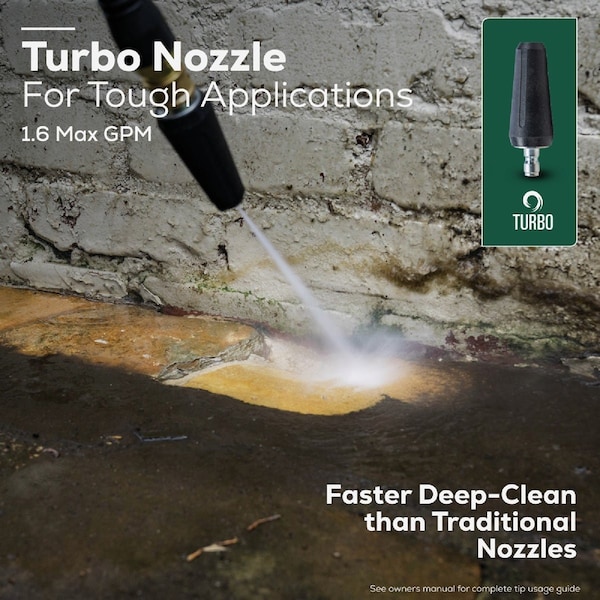 The Greenworks 2300 PSI pressure washer is powerful and reliable delivering 2.3 GPM Max of water flow. With a hassle-free push-button start it powers up easily every time and gets to work fast. This unit features a Total Stop System. (TSS) senses water flow in the pump. When the trigger is released water stops flowing through the pump. The TSS then automatically turns the motor off to protect the pump from overheating. Innovative Greenworks TruBrushless motor technology automatically adapts motor power for maximum cleaning power with any nozzle. Its equipped with extra-long 35 Ft. power cord with in-line GFCI and waterproof power plug 25 Ft. kink-resistant hose that eliminates frustrating hose tangles 10 In. never-flat wheels for easy transportation on-board soap tank and on-board accessory storage for the (5) spray nozzles Turbo Soap 15-degreee 25-degree and 40-degree.