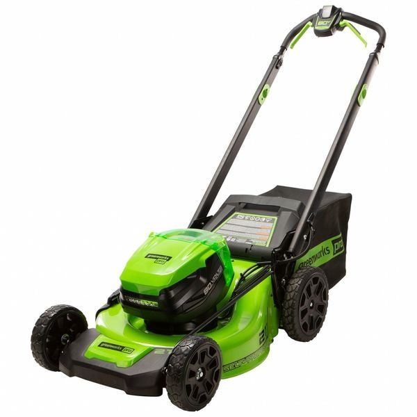 Battery-Powered Lawn Mower, Drive Type Self-Propelled, Cutting Width 21 in, Discharge Location Side, Run Time 60 min