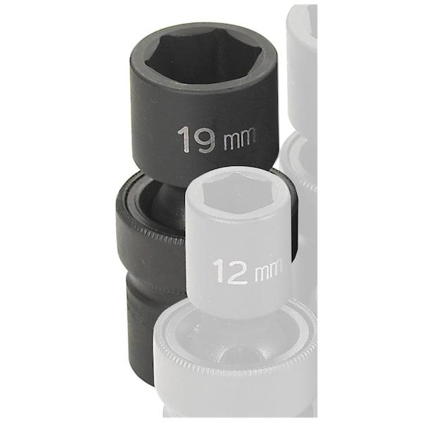 1/2" Drive, 19mm Size, Metric Socket, 6 Points, 19mm, 1/2"D, Impact, Univ 6pt.