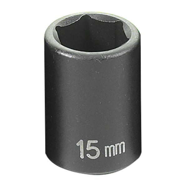 3/8" Drive, 15mm Size, Metric Socket, 6 Points, 15mm, 3/8"D, Impact, 6pt.