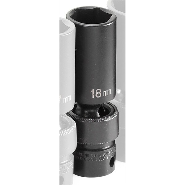 3/8" Drive, 18mm Metric Socket, 6 Points, 3/8"Dx18mm, D Univ