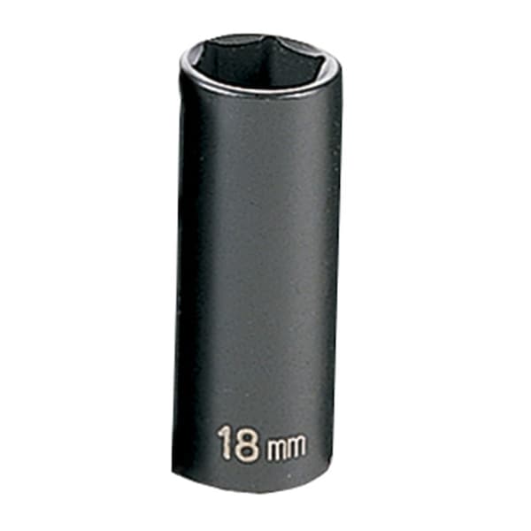 3/8" Drive, 18mm Size, Metric Socket, 6 Points, 18mm, 3/8"D, Impact, 6pt., D