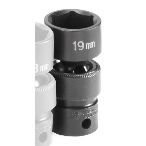 3/8" Drive, 19mm Size, Metric Socket, 6 Points, 19mm, 3/8"D, Impact, Univ 6pt.