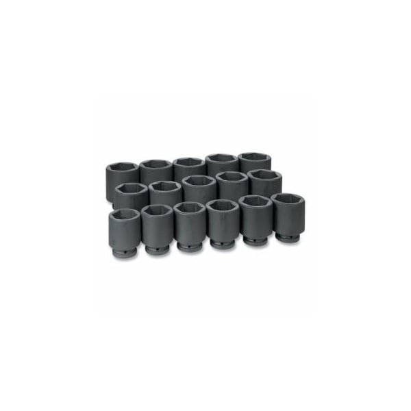 Impact Socket Set, 1 in Dr, SAE, 6-point, 2-1/16 in to 3 in, 16-Pc Deep Length
