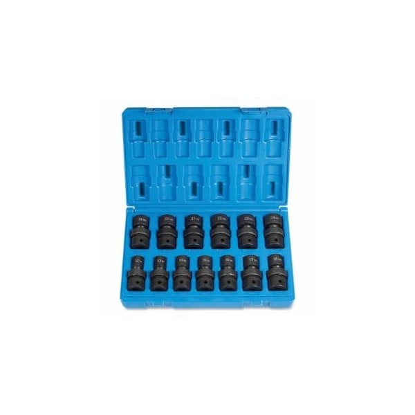 Impact Socket Set, 1/2 in Dr, Metric, 12-point, 12 mm to 24 mm, 13-Pc STD Length Universal