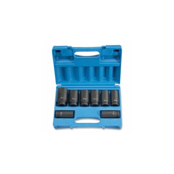 Impact Socket Set, 3/4 in Dr, Metric, 6-point, 26 mm to 38 mm, 8-Pc Deep Length