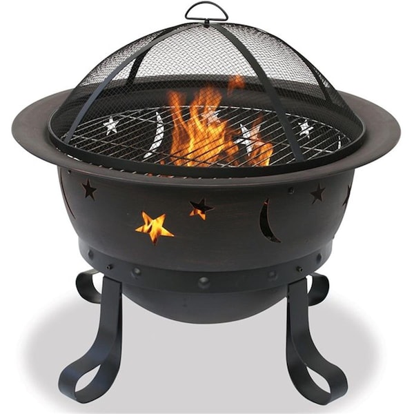 30 Inch Bronze Fire Bowl With Moons And Starzs