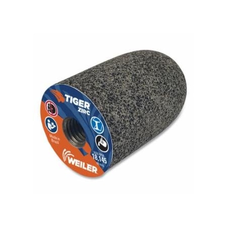Tiger Grinding Plug, 2 in dia x 3 in Thick x 5/8 in-11 Arbor, 20 Grit, Zirconia Alumina, Type, 12PK