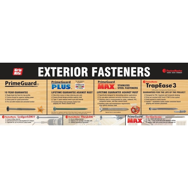 Full color header lists features and benefits of all exterior fasteners in Category Solutions.