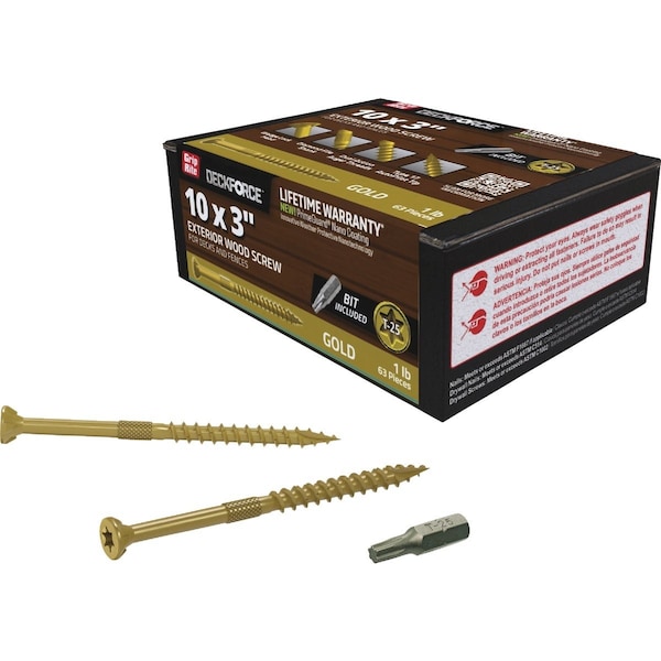 DeckForce PrimeGuard Nano No, 10 x 3'' Star Drive Gold Screw, 1 Lb.