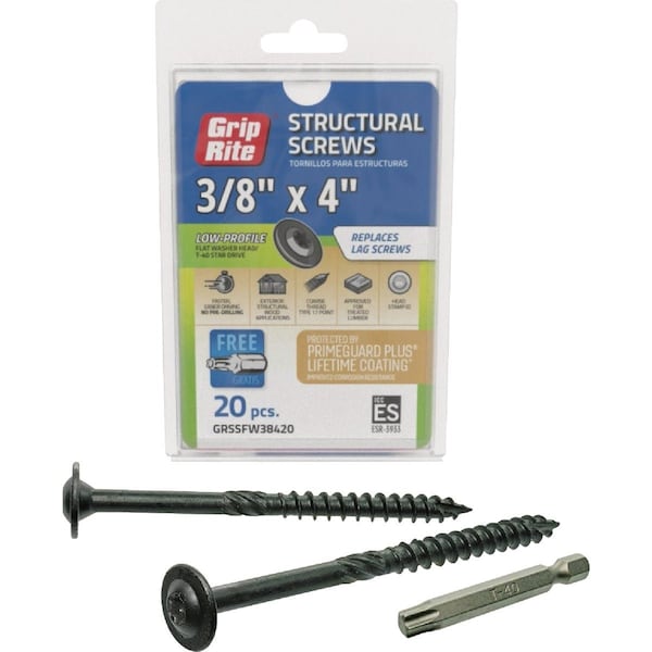 PrimeGuard Plus 3/8''x4'' Flat Washer Head Structure Screw, 20-Count