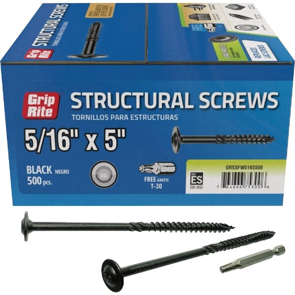 PrimeGuard Plus 5/16''x5'' Flat Washer Head Structure Screw, 50-Count