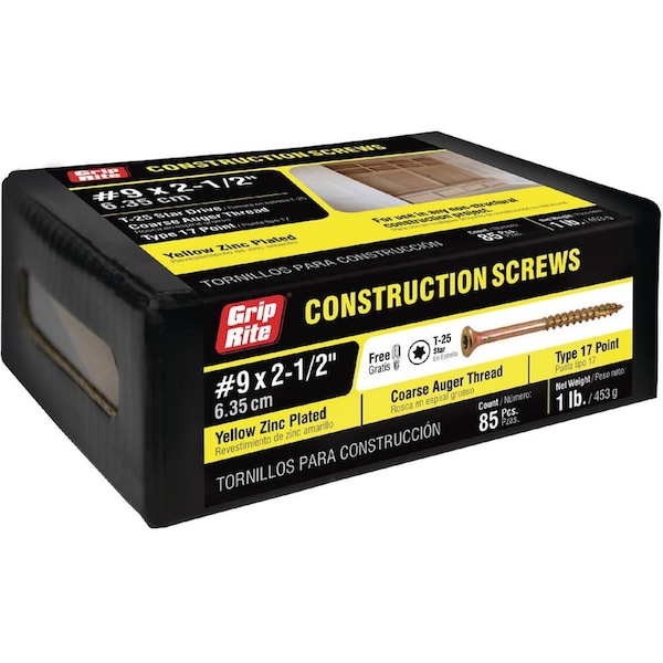 Grip-Rite interior gold construction screws are the reliable choice for a multitude of indoor fastening solutions, including cabinetry, trim, doors, shelving, general woodworking, and non-structural framing, among others. Featuring T-25 star drives and type 17 points, they engage quickly and do not require predrilling. An all-purpose screw for reliable results during interior construction.