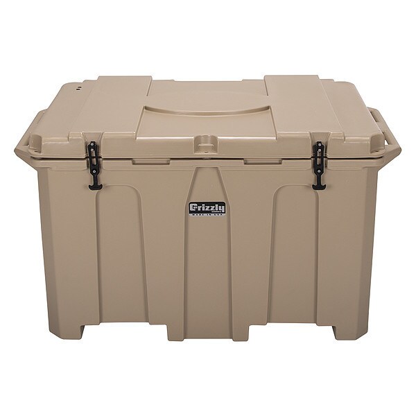 Marine Chest Cooler, Marine Chest Cooler, With Wheels No, 400 qt, Exterior Length 54 1/2 in, Exterior Width 30 3/4 in, Exterior Height 31 13/16 in, Plastic, Ice Retention Up to 7 days, Body Color Tan, Lid Color Tan, Number of Cans 504