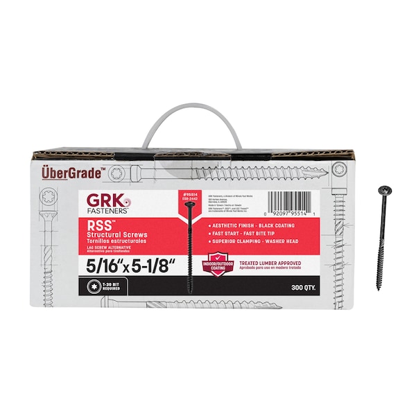 The GRK RSS Rugged Structural Wood Screw is a professional-grade fastener designed for heavy-duty framing, decking, and construction projects. These premium screws deliver superior performance in applications, including deck building, timber framing, laminated beams, pole barns. GRK’s Black Climatek coating, provides exceptional corrosion resistance, making these construction screws ideal for pressure-treated lumber, cedar, and all other wood applications. The patented Fast Bite Tip and Zip-Tip technology eliminates the need for pilot holes, while the W-Cut design ensures smooth, low-torque driving in all wood types. ICC-ES ESR-2442 approved for structural applications, these self-drilling screws are trusted by professional builders and DIYers alike. The star drive head with 6-points of contact prevents cam outs and head stripping, making these wood screws the choice for demanding construction and home improvement projects.