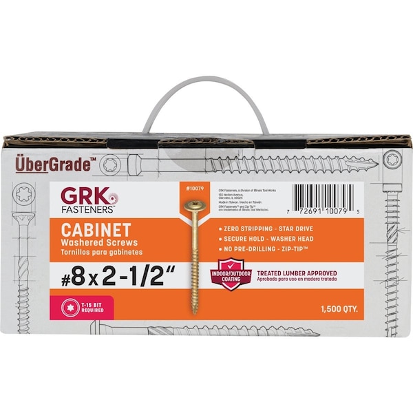 GRK No, 8 x 2-1/2'' Star Drive Cabinet Screw, 1500 Ct.