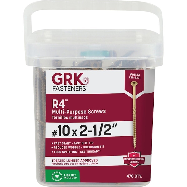 GRK R4 No, 10 x 2-1/2'' Star Drive Multi-Purpose Wood Screw, 470 Ct.