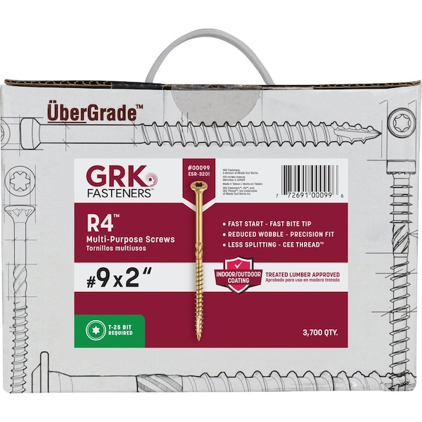GRK R4 No, 9 x 2'' Star Drive Multi-Purpose Wood Screw, 3700 Ct.