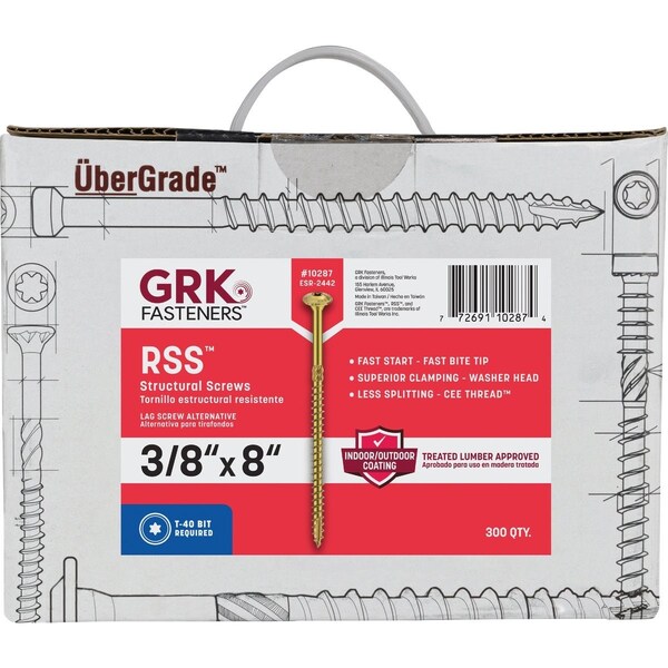 GRK RSS Rugged 3/8'' x 8'' Star Drive Washer-Head Structure Screw, 300 Ct.