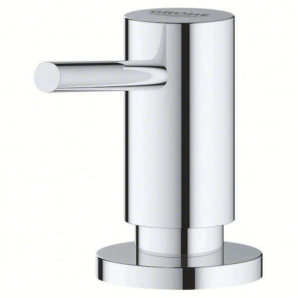 Soap Dispenser, Color Silver, Mount Type Counter, Product Type Soap Dispenser, Material Brass, Series Grohe, Finish Chrome Plated, Refill Size 15 oz, Operation Mode Manual, Power Source Not Applicable, Batteries Included Not Applicable, Overall Depth 3 7/8 in, Overall Height 2 7/8 in, Overall Width 1 3/4 in, Counter Hole Diameter 1 3/16 in, Maximum Countertop Thickness 2 3/8 in, Spout Length 3 in, Form Liquid, Standards ASME A112.18.1, CSA B125.1 Certified, Energy Policy Act of 1992