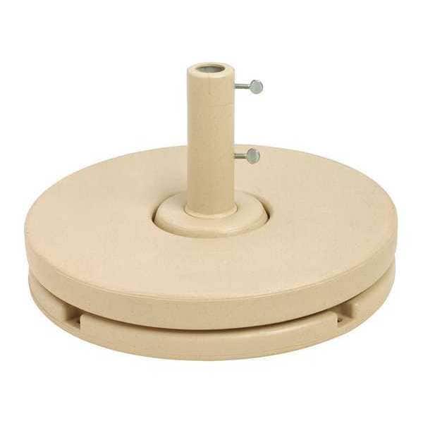 Umbrella Base, Overall Diameter 20 in, Includes Wheels No Wheels, Stem Height 16 in, Color Sand, Material Cement, Resin, Maximum Weight 70 lb, For Pole Diameter 2 in, Features UV Resistant, Includes (2) Thumb Screws, Ballast Required No