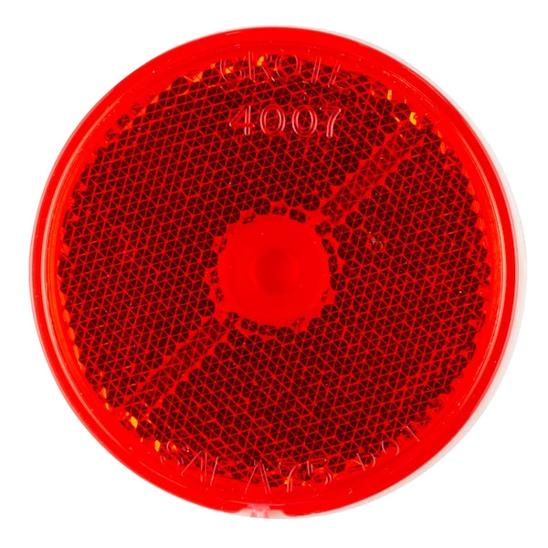 Reflector, Mounting Style Adhesive, Round, Red, Overall Width 2 1/2 in, Overall Length 2 1/2 in, Overall Diameter 2 1/2 in, Federal Motor Vehicle Safety Standards Met SAE A, Indoor or Outdoor Use Outdoor, Mounting Hardware Included Yes, Permanence Permanent, Reflector Material Acrylic, Standards FMVSS, SAE A