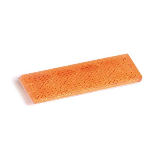 Reflector, Mounting Style Adhesive, Rectangular, Amber, Overall Width 1 3/16 in, Overall Length 4 7/16 in, Federal Motor Vehicle Safety Standards Met SAE A, Mounting Hardware Included Yes, Permanence Removable, Reflector Material Acrylic, Standards FMVSS, SAE A