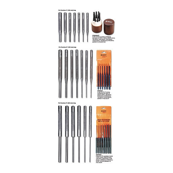 Pin Punch Drive Set,8 In.,8 pcs.