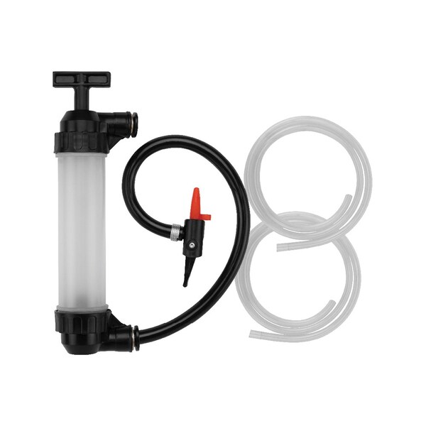 The Groz Dual Fluid Transfer and Air Pump with Quick Connect Adapter is a portable hand-operated pump that can either pump air or low viscosity fluids. This pump has a unique coupler design for greater holding power, eliminating the mess caused by loose hoses while providing a quick and hassle-free fluid transfer. Small and lightweight, these pumps easily fit in a toolbox or trunk of a car and can be used with standard gallon containers. For use with: light oils and water-based media Flow Rate: up to 3 GPM, Air pump up to 50 PSI Comes complete with: Hand operated transfer pump 48 in (1200 mm) x 1/2 in (12 mm) diameter hoses 15” (380 mm) air pressure hose Snap-shut valve Quick Connect Adapter Inflation needle