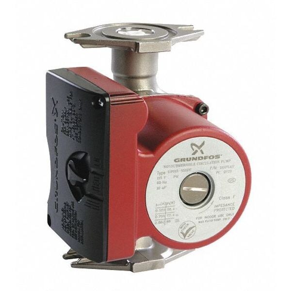 Hot Water Circulator Pump, Face to Face Dimension 6 1/2 in, Number of Speeds 3, Phase 1, Pump Type Wet Rotor, Maintenance Free, Series UP, Amps 0.95
