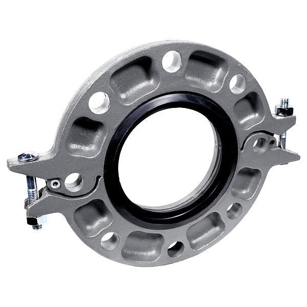Flange, 4 in Nominal Pipe Size, Grooved, 4 1/2 in Flange Outside Diameter, 3/4 in Flange Thickness, Ductile Iron, Zinc Plated, 300 psi Maximum Operating Pressure, -20 Degrees to 180 Degrees F, Number of Bolt Holes 8, 7 1/2 in Bolt Circle Diameter, 3/4 in Bolt Hole Diameter