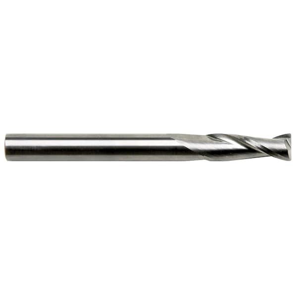 Two flute carbide end mill with corner radius allows more strength and minimizes chipping on corners. Two flute construction provides more chip space and clearance than three or four flute designs.
