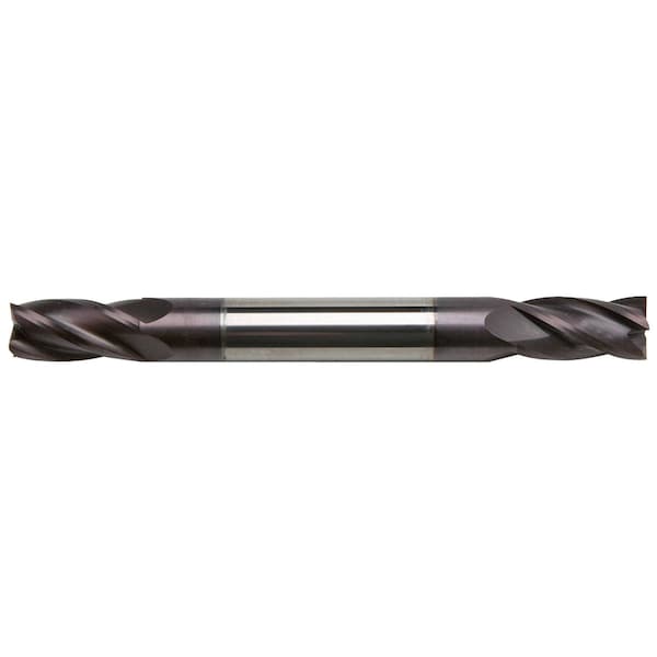 This Double End end mill has the same geometry and application design as our General Purpose Single End Mill. Four-flute configuration with center cutting permits plunging and milling on many ferrous and most non-ferrous materials, and offers lower chip-load for size control and finish. TiAlN coated for increased speed and feed capabilities and enhanced tool life
