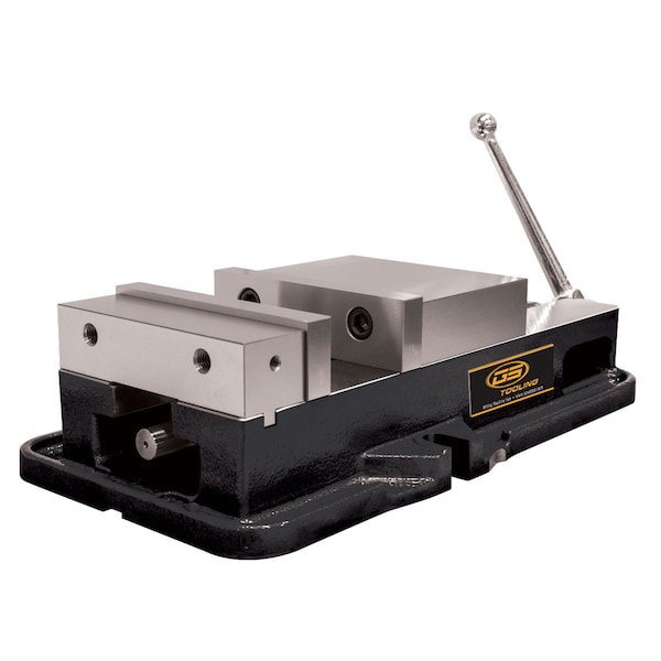 - Jaw Width (Inch): 8" - Orientation Type: Horizontal - Number of Stations: 1 - Base Motion Type: Stationary - Jaw Opening Capacity (Decimal Inch): 10" - Vises are Matched - An integral key and large fasteners reduce deflection by 50% - 4 jaw plate positions allow extra capacity with the jaw plates in the outside position - The swivel base is graduated 360o in one degree increments - Chip cover protects leadscrew from damage - The quality movable jaw does not lift off the bed, and the deflection of the stationary jaw is minimized