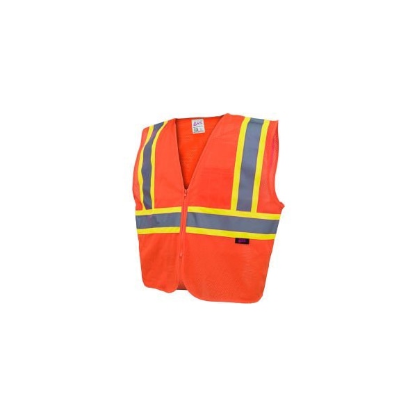 GSS SAFETY 1006 STANDARD CLASS 2 TWO TONE MESH ZIPPER SAFETY VEST, ORANGE, MEDIUM FEATURES: