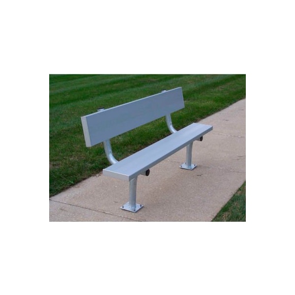 8' team bench with galvanized steel surface mounting frames, a 10" wide anodized seat plank and backrest.