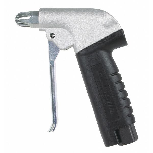 Air Gun, Pistol-Grip, Number of Nozzles Included 1, Nozzle Length 1 1/2 in, Nozzle Tip Material Aluminum, Nozzle Angle Straight, Nozzle Features Medium Thrust, Nozzle Quiet Force, Air Flow Pattern Focused, Sound Level 87 dB, OSHA Pressure Compliant Yes, Output Thrust 2 lbf, Body Material Aluminum, Air Inlet Size 3/8 in, Air Inlet Gender Female, Air Inlet Type NPT