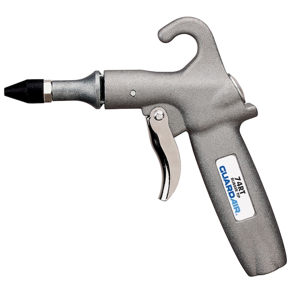 Air Gun, Pistol-Grip, Number of Nozzles Included 1, Nozzle Length 1 1/2 in, Nozzle Tip Material Rubber, Nozzle Angle Straight, Nozzle Features Non-Marring, Nozzle Safety, Air Flow Pattern Chip Protect, Sound Level 113 dB, OSHA Pressure Compliant Yes, Output Thrust 0.5 lbf, Body Material Aluminum, Air Inlet Size 1/4 in, Air Inlet Gender Female, Air Inlet Type NPT