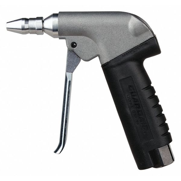 Air Gun, Pistol-Grip, Number of Nozzles Included 1, Nozzle Length 1 1/2 in, Nozzle Tip Material Aluminum, Nozzle Angle Straight, Nozzle Features Low Thrust, Nozzle Quiet Force, Air Flow Pattern Focused, Sound Level 74 dB, OSHA Pressure Compliant Yes, Body Material Zinc, Air Inlet Size 3/8 in, Air Inlet Gender Female, Air Inlet Type NPT