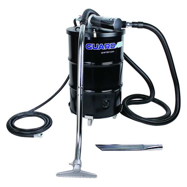 Static-Conductive Drum Vacuum, Vacuum Power Source Pneumatic, Vacuum Filtration Type Standard, Vacuum Pickup Type Wet/Dry, Vacuum Air Flow 89 cfm, Static Pressure 185 in, Sound Level 102 dB, Tank Material Steel, Tank Size 55 gal, Tank Dry Capacity 55 gal, Tank Wet Capacity 55 gal, Vacuum Collection Type Bagless, Vacuum Hose Dia. 2 in, Vacuum Hose Length 20 ft, Minimum Air Compressor 15 hp, Air Hose Dia. 3/4 in, Air Hose Length 20 ft, Inlet Air Flow 68 cfm, Inlet Air Pressure 100 psi