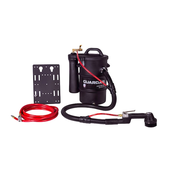 Personnel Cleaning Station, Vacuum Power Source Pneumatic, Vacuum Filtration Type Standard, Filter Efficiency 77 Percent at 0.8 microns, Vacuum Pickup Type Wet/Dry, Vacuum Air Flow 73 cfm, Static Pressure 77 in, Sound Level 88 dB, Tank Material Steel, Tank Size 5.5 gal, Tank Dry Capacity 5 1/2 gal, Tank Wet Capacity 5.5 gal, Vacuum Collection Type Bagless, Vacuum Hose Dia. 1 1/4 in, Vacuum Hose Length 5 ft, Minimum Air Compressor 4.7 hp, Air Hose Dia. 3/4 in, Air Hose Length 20 ft