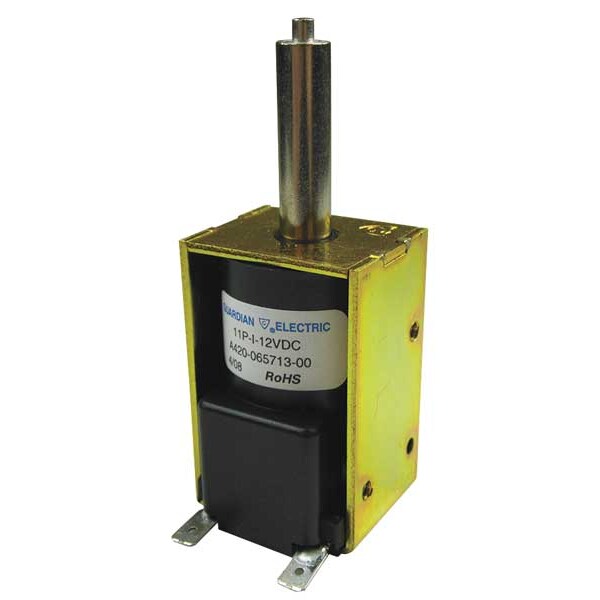 Solenoid, Box Frame, Push, Stroke Range 1/8 In. to 3/4 In., Pull Force Range 1.0 to 21.0 oz., Width 15/16 In., Depth 1-3/16 In., Length 1-13/16 In., Body Length 1-13/16 In., Coil Volts 24VDC, Seated Amps 258mA, Seated Watts 6.5, Coil Resistance 93.1 ohm, Coil Insulation Class 105, Terminals Solder Lug, Duty Cycle Continuous, Material of Construction Steel, Mounting Holes 6-32 UNC -2B (4 Holes), 5/8 In. From Mounting Holes to Plunger Hole, Standards UL, RoHs