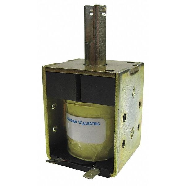 Solenoid, Box Frame, Latching, Stroke Range 1/8 in to 3/8 in, Pull Force Range 1.0 to 7.0 oz, Width 3/4 in, Depth 3/4 in, Length 1 1/8 in, Body Length 1 1/8 in, Coil Volts 24V DC, Seated Amps 200mA, Seated Watts 5, Coil Resistance 120.0 ohm, Coil Insulation Class 105, Terminals Solder Lug, Duty Cycle Continuous, Material of Construction Steel, Mounting Holes 4-40 UNC-2B (2 Holes), 17/32 in From Mounting Holes to Plunger Hole, Standards UL, RoHs