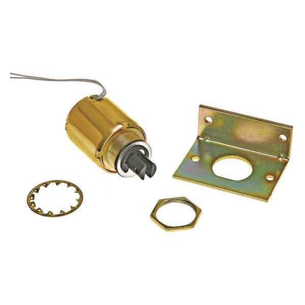 Solenoid, Tubular, Stroke Range 1/8 in to 3/8 in, Pull Force Range 2.0 to 9.0 oz, Dia. 3/4 in, Length 1 9/16 in, Body Length 1 9/16 in, Coil Volts 12V DC, Seated Amps 379mA, Seated Watts 4.8, Coil Resistance 31.7 ohm, Coil Insulation Class 105, Terminals 6.5 in Leads, Duty Cycle Continuous, Material of Construction Steel, Mounting Holes Mounting Bracket (2 Holes), Standards UL, RoHs